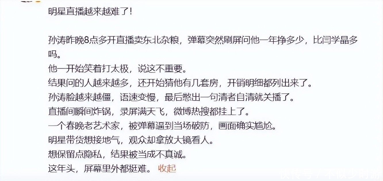 而恰在此时,闫学晶被曝直播年入过亿却仅缴税七万余元,涉嫌严重偷税漏税,再度引爆公众对明星税务合规的关注。受此波及,大量网友开始追问孙涛的直播收益明细。